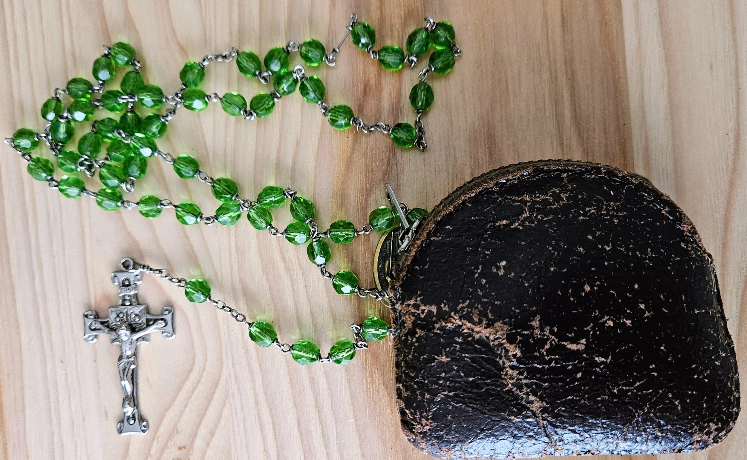 My mother prayed for her family. She was Roman Catholic, so she prayed the rosary. The older she got, the more diligent she became to pray for her church and her family. She had a green glass bead rosary that she constantly carried. It was stored in a little leather coin purse that is worn very thin from decades of friction in her handbag or pocket.